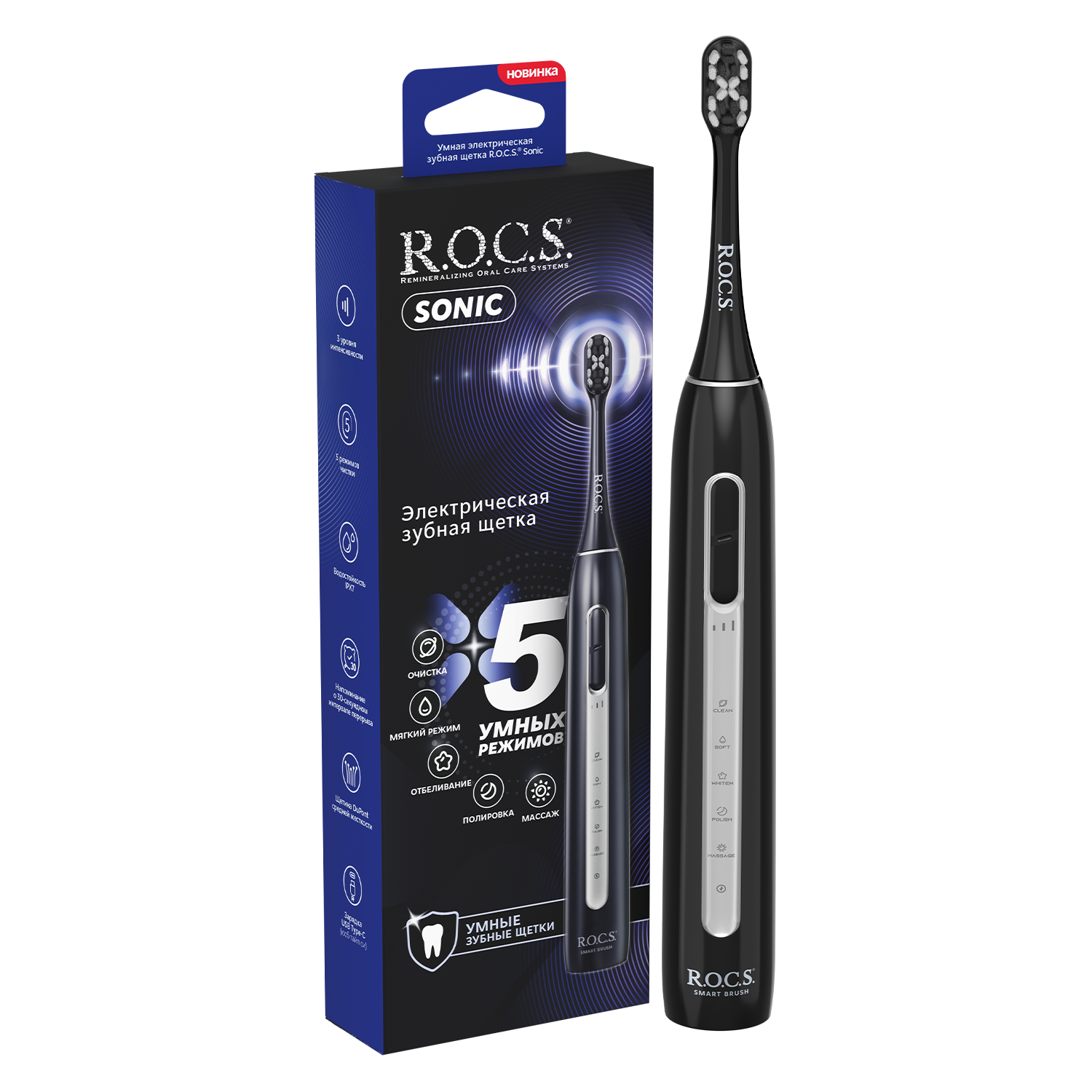 Звуковая электрическая зубная щетка R.O.C.S.® Sonic – Ваш инновационный помощник для обеспечения ежедневной гигиены полости рта и поддержания здоровья зубов и десен! -