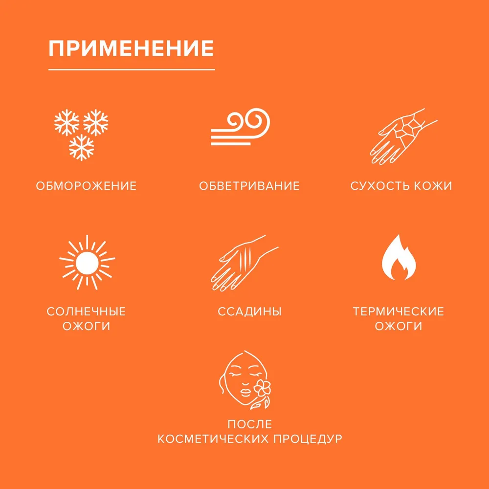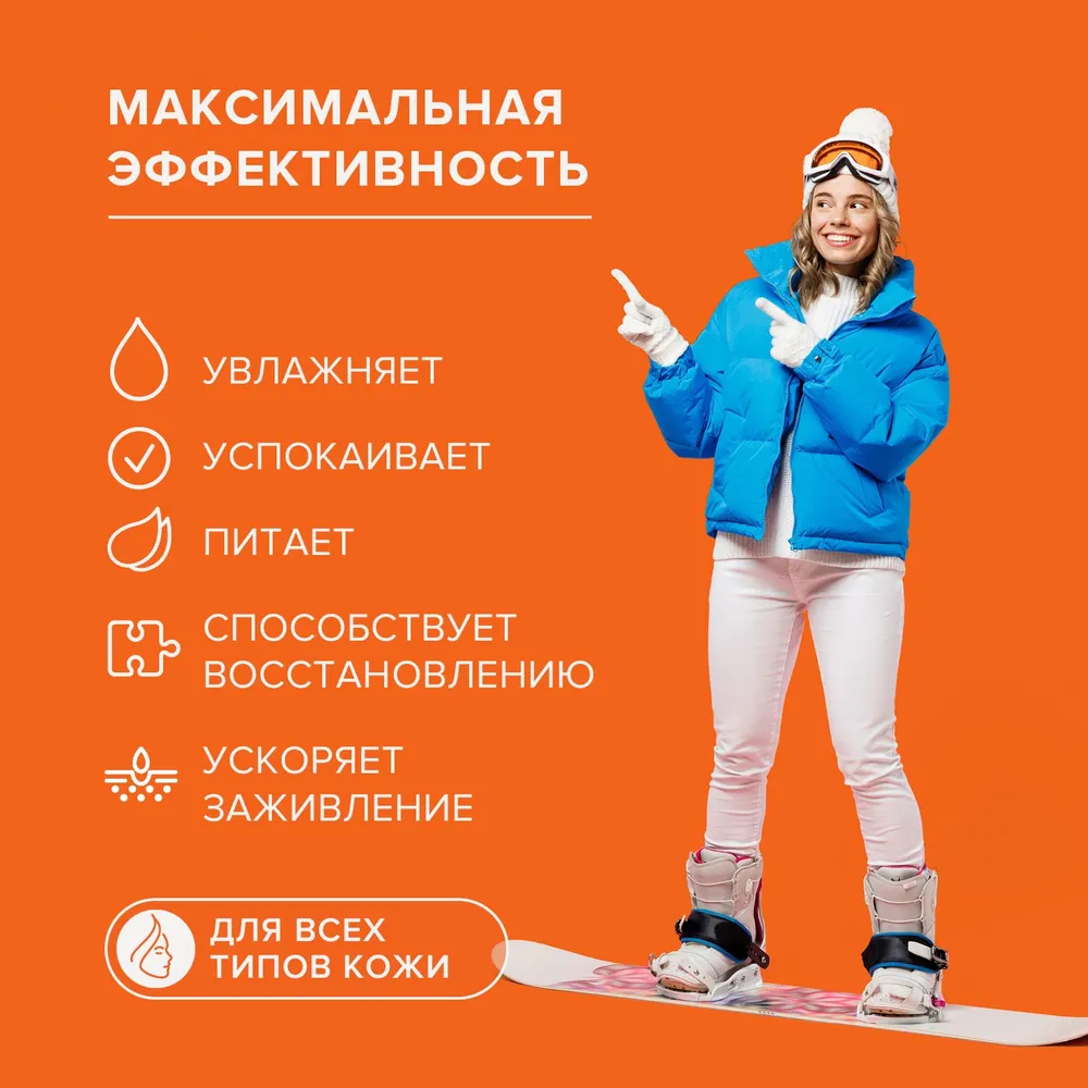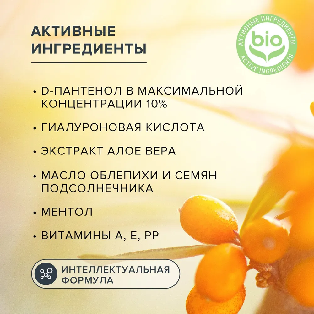 Высокое содержание D-пантенола10% стимулирует процесс регенерации кожи, способствует её быстрому восстановлению после воздействия высоких и низких температур.
