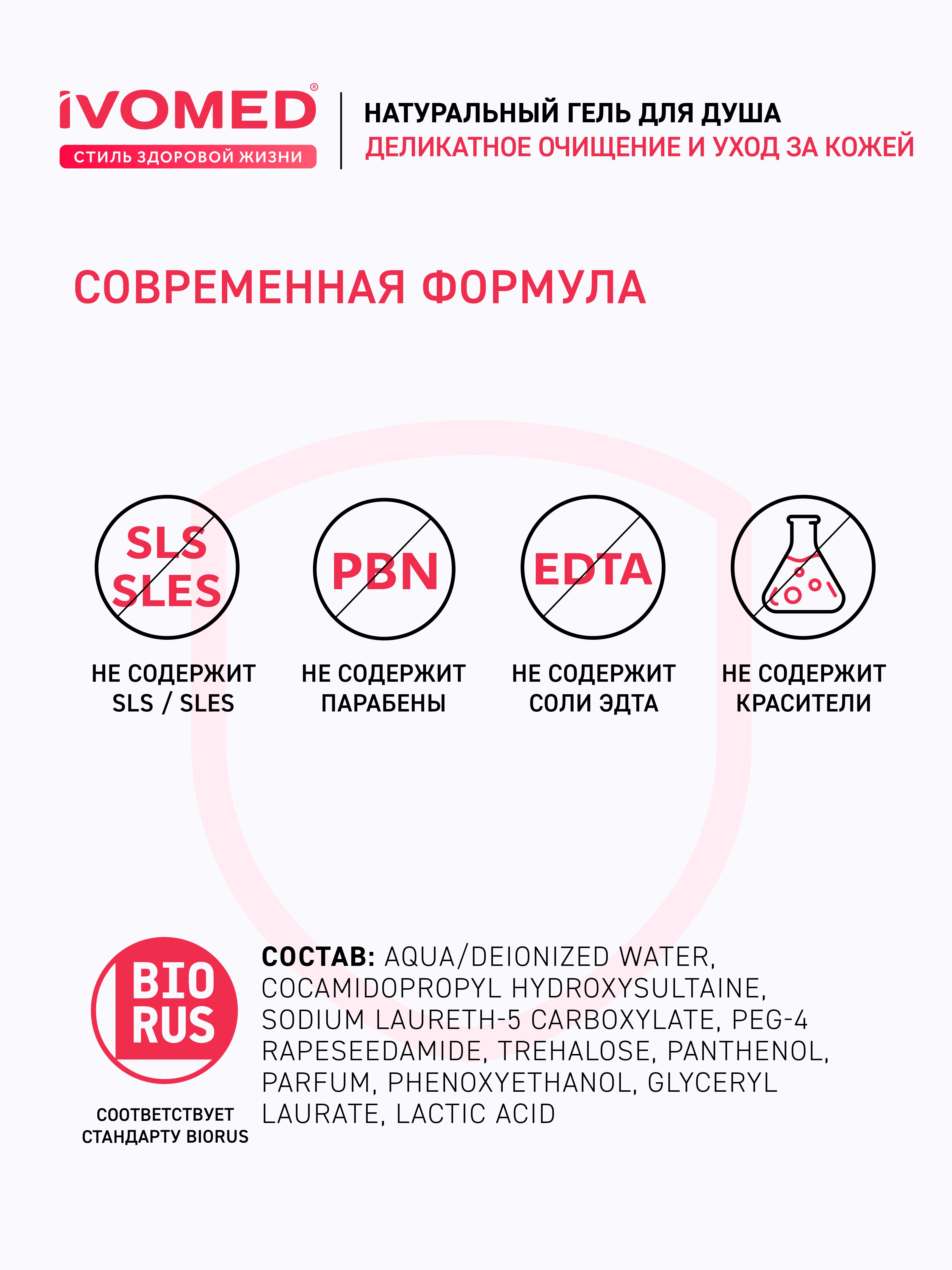Бренд IVOMED По типу кожи Для всех типов Объем 300 мл Упаковка Флакон Производитель ООО «ЕВРОКОСМЕД-Ступино» Страна производства РОССИЯ Срок годности (мес) 36 - Aqua/Deionized Water, Cocamidopropyl Hydroxysultaine, Sodium Laureth-5 Carboxylate, PEG-4 Rapeseedamide, Trehalose, Panthenol, Parfum, Phenoxyethanol, Glyceryl Laurate, Lactic Acid.